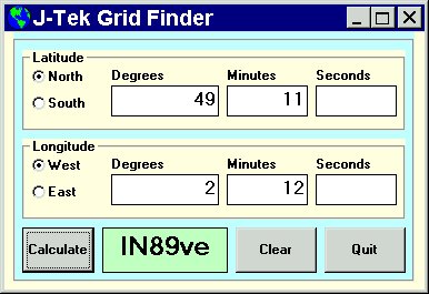 This program enables you to derive your Grid Locator, as used on the VHF bands, from your latitude and longitude. It is written in Visual Basic, version 2. This is now quite an old version but has the advantage of working within the older types of Microsoft Windows, such as 3.1, as well as the more recent ones. Another advantage is the much smaller file size of the DLL that is needed to run it compared with the later versions.